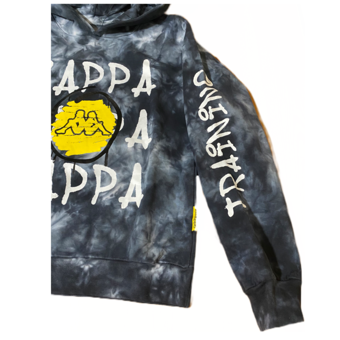 La felpa con cappuccio è in morbido cotone, felpata all’interno. Presenta una scritta centrale del brand con il logo in giallo della Kappa al centro e la scritta “training” sulla manica sinistra. Il completo Kappa bambino è disponibile nella colorazione nero con un particolare effetto chiazzato in bianco un capo molto particolare distintivo del brand per chi cerca qualcosa di diverso da mettere nell’armadio del proprio bimbo, un diversivo dal solito monocolore. Può essere indossata anche separatamente dal pantalone in tuta dando un tocco di originalità al look di ogni giorno.